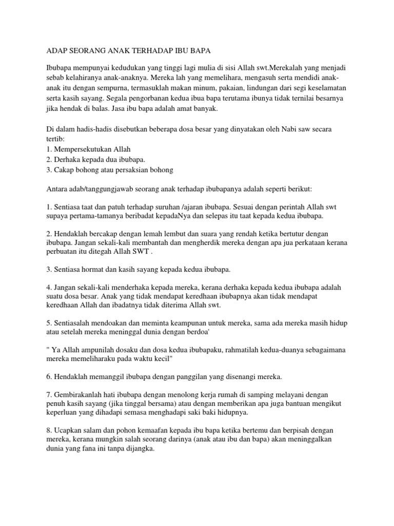 Tanggungjawab Anak Kepada Ibubapa Almukhlisin from www.almukhlisin.my We did not find results for: Check spelling or type a new query. Maybe you would like to learn more about one of these?